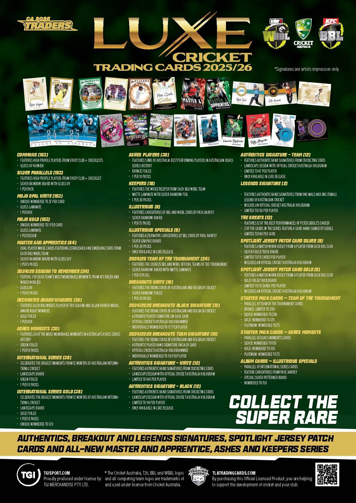 2025/26 TLA CA Cricket Traders Luxe Trading Cards Sealed Pack