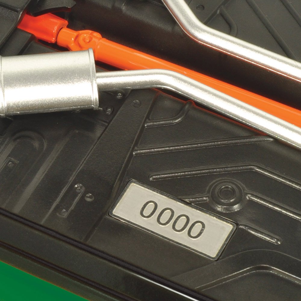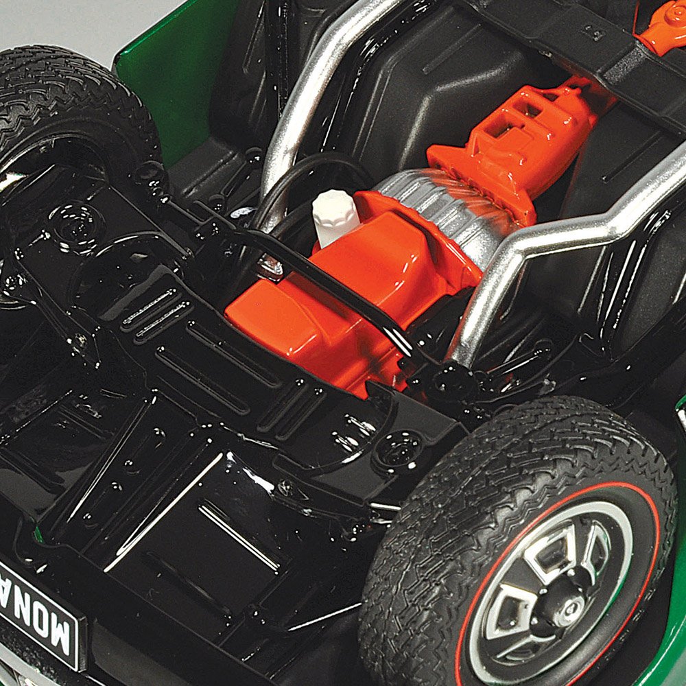 - The front chassis shows the engine sump, exhaust system and working suspension. The front wheels are even linked to the steering wheel.