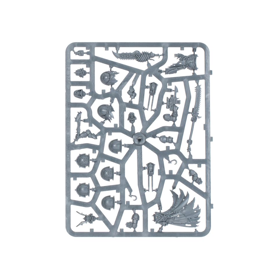 This multipart plastic kit allows you to build 10 Nemesis Claw Chaos Space Marines – twisted and sadistic killers from the Night Lords Legion. These miniatures can be used as Nemesis Claw kill team operatives in games of Kill Team, or fielded with Chaos Space Marines armies in games of Warhammer 40,000. This kit includes various weapons, heads, and accessories, allowing you to assemble a unique squad and build some as specialists for your kill team – such as a cruel Fearmonger, grotesque Ventrilokar, and a Skinthief wielding a vicious Nostraman chainglaive.