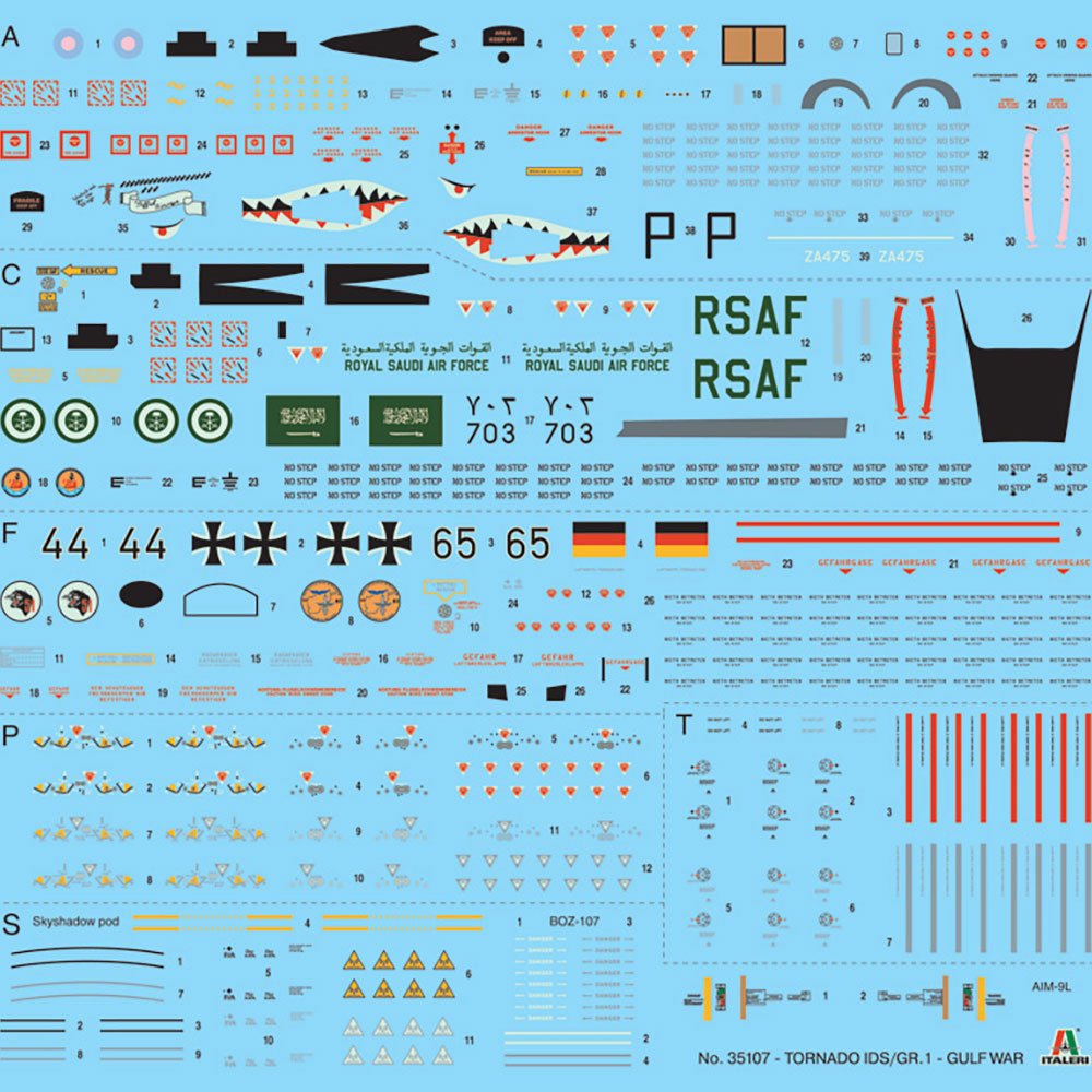 Multirole Tornado is a twin-engine combat aircraft with a variable-sweep wing. This kind of aircraft is the result of a joint development project carried out by British, German and Italian companies. Although during its lifetime it has been used for several purposes (ground attack, electronic combat/reconnaissance, interceptor), its main role has always been to perform low-altitude penetrating strike missions. Tornado can load and use a powerful and varied set of offensive weapons. Thanks to its two powerful afterburning turbofans, the Tornado can reach the max speed of Mach 2.2. The Tornado baptism of fire took place in 1991 during the Gulf War. More in detail, the air campaign of the Gulf War, in which the Italian Tornados IDS took part, began on 17th January. The goal of the aerial bombing campaign was the suppression of military targets and infrastructures.