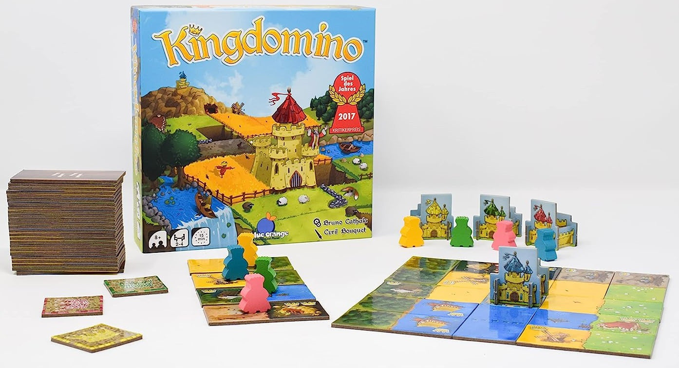 Kingdomino is a 2 to 4 player strategy game that plays like dominoes with a kingdom-building twist. Each turn you will