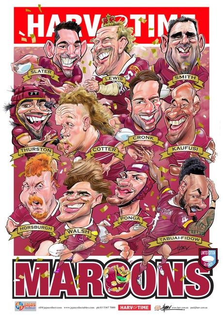 Wally Lewis, State of Origin QLD Maroons, Harv Time Poster