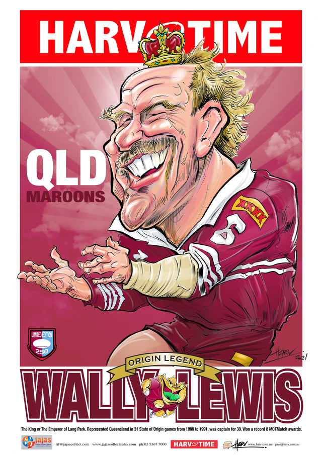 Wally Lewis, State of Origin QLD Maroons, Harv Time Poster