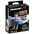 The PLAYMOBIL set shows NARUTO SHIPPUDEN character Hinata with black hair in white-purple jacket with ankle-length blue pants and black ninja sandals. She wears her headband around her neck in a very unconventional way.
