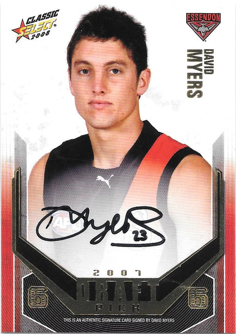 David Myers, Gold Draft Pick Signature, 2008 Select AFL Classic