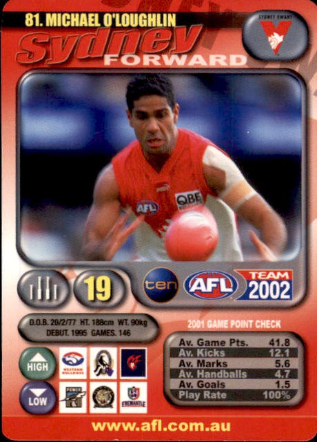 Michael O'Loughlin, Base, Silver & Gold Cards, 2002 Teamcoach AFL