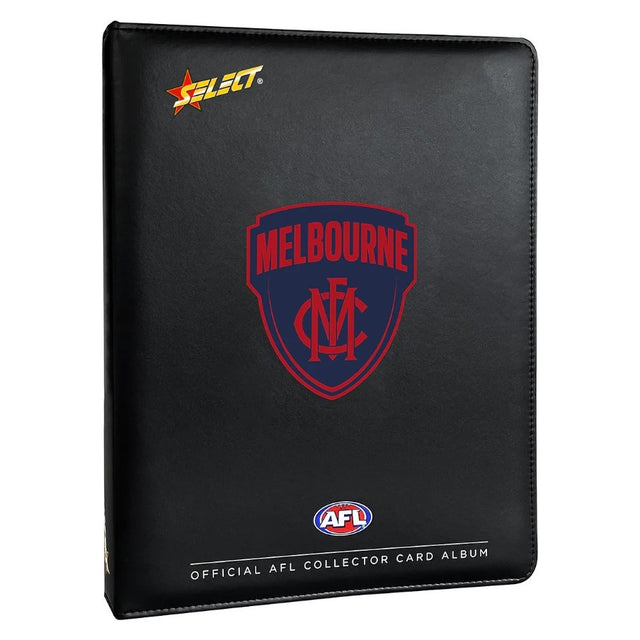 Newly designed Official AFL Melbourne Club Logo Album (3 ring binder), including 25 x Card Armour 9 Pocket Pages inside! Now with a zipper enclosure to give the album a total seal.