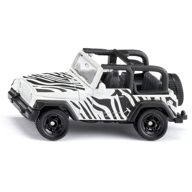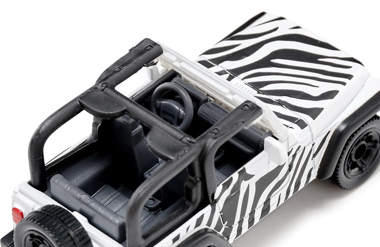 The legendary Jeep Wrangler is making its way into the siku range with another vehicle in a unique safari style. The angular metal body paired with large all-terrain wheels in a cool black and white safari look gives this model its adventurous character. The trailer coupling for combining with trailers on the same scale adds to the fun.