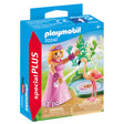 Set includes 1 princess; 1 flamingo, 1 dragonfly, 1 pond with plants, 1 magic wand, 2 arm cuffs, 1 crown, 1 necklace