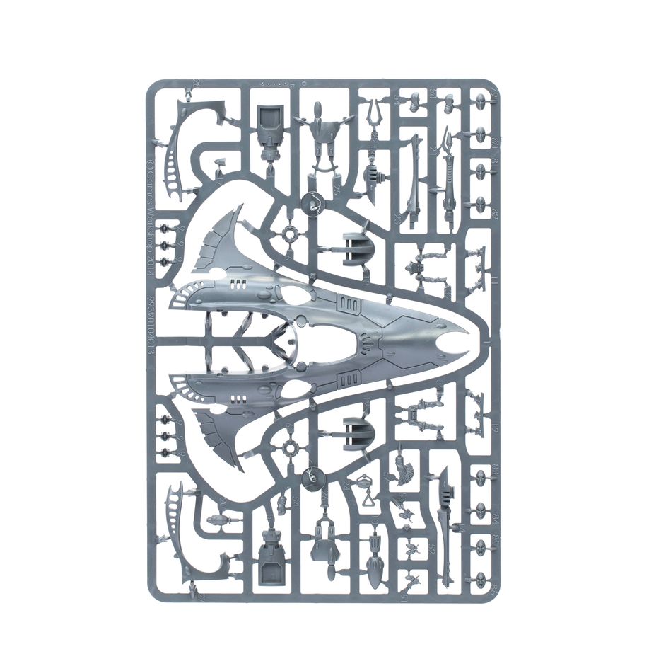 The Voidweaver gunship has a choice of haywire cannon or prismatic cannon as its main weapon. It also includes mask options for the crew and vehicle, and the kit can alternatively be built as a Starweaver.