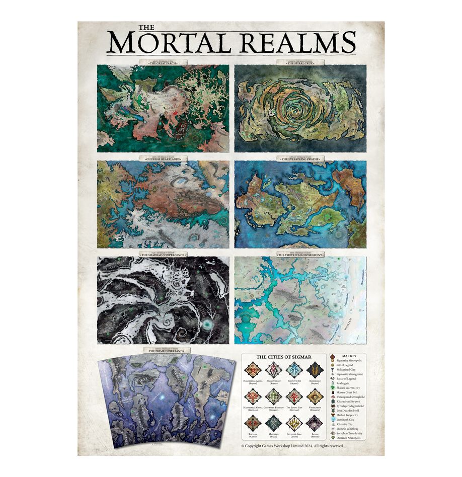 Each copy of issue 502 also comes with a cardboard insert, which includes 2x paint recipe cards, 2x bunker achievement cards, 3x double-sided quick reference cards for the new edition of Warhammer Age of Sigmar, a double-sided A2-sized poster showing the Mortal Realms on one side with a Warcry campaign on the back, and 1x double-sided card including the scenario of the month for Warhammer 40,000, and Warhammer Age of Sigmar.