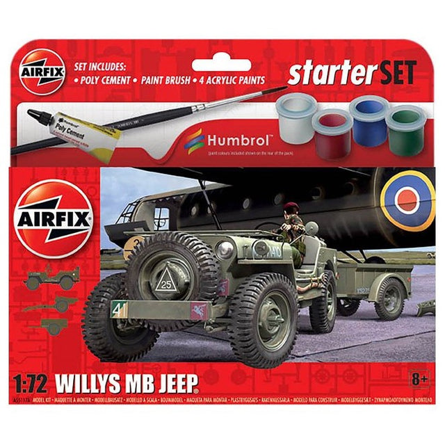 AIRFIX WILLYS JEEP MB, 1:72 SCALE Model Kit Starter Set