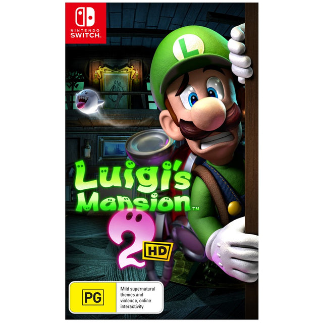 Progress through diverse missions to retrieve the missing shards of the Dark Moon scattered across several distinct haunted mansions, each with their own puzzles to solve and ghosts to capture. Go for a high rating by using your superpowered ghost-hunting tool, the Poltergust 5000, to suck up ghosts (and window curtains) and blow air to search every nook and cranny of the chilling-yet-charming mansions. This spooky fun adventure, originally released for the Nintendo 3DS™ system, is now visually enhanced in HD on the Nintendo Switch™ system.